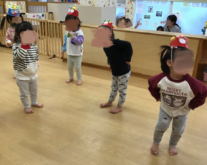 最後にみんなでおにのパンツも踊りました。掛け声やつよいぞポーズなど、ノリノリで踊る姿がかわいかったですよ♡ みんなにもたくさん福が来ますように(^^)
