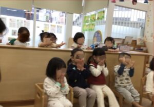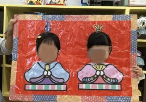 作ったひな人形製作と、お土産にひなあられを持ち帰ります。お菓子のお土産にお目めがキラキラの子どもたちでした。